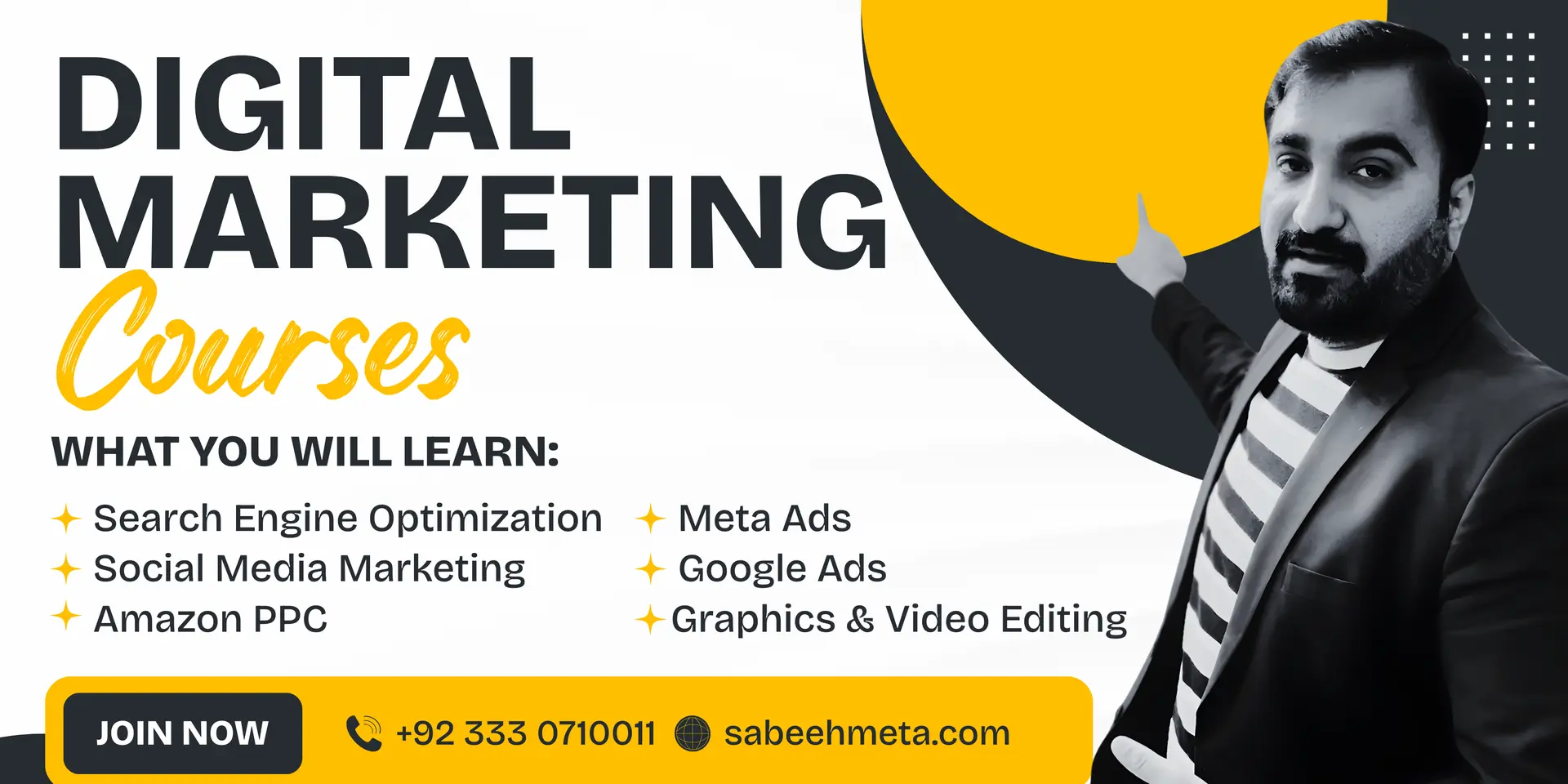 Are you actively looking for the most professional and trusted facilitators offering a Digital Marketing Course or an Advanced Digital Marketing Course? If yes, your search ends here at Sabeeh ul Hassan — a renowned Digital Marketing expert with 18+ years of industry experience, having successfully worked with 700+ clients worldwide. His portfolio includes projects across SEO, Google Ads, Meta Ads, Amazon PPC, and strategic business growth consulting, along with being a Top-Rated Upwork Freelancer.